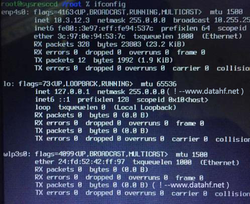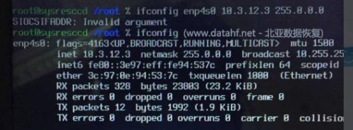 因为我们需要分配个ip给他,在这里我们分配网卡“enp4s0”,ip地址分配成10.3.12.3 子网掩码为255.0.0.0,使用如下命令:ifconfig enp4s0 10.3.12.3 255.0.0.0 然后再使用ifconfig查看ip地址