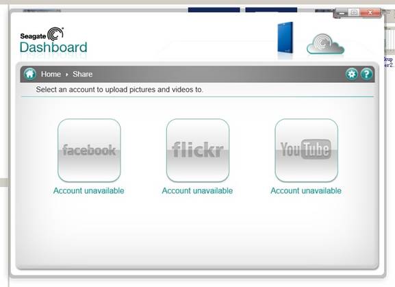 接下来,便是Seagate Dashboard非常值得称道的一项功能了——"社交网络的上传下载"。打开面板的Share(共享)窗口,会出现如下界面。