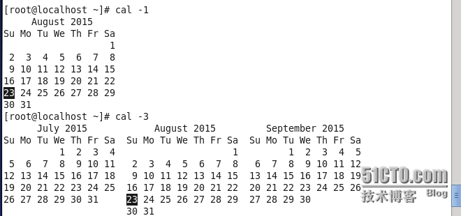 Cal -1 显示当前月月历