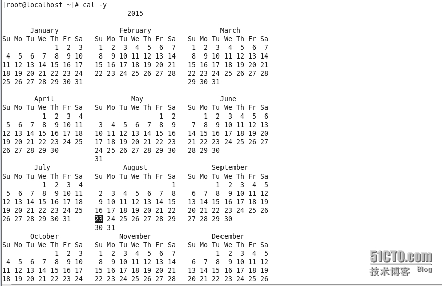 Cal -y 显示当年的月历