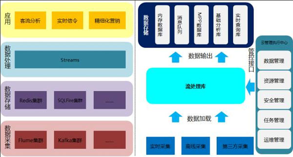 数据应用层:根据企业的特点不同划分不同类别的应用,比如针对运营商,对内有精准营销、客服投诉、基站分析等,对外有基于位置的客流、基于标签的广告应用等等。