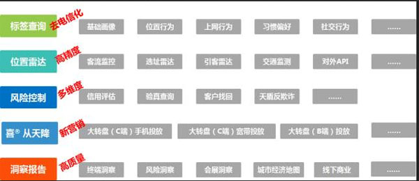 每个企业应根据自己的实际规划自己的应用,其实搞应用蓝图很难,大数据架构越上层越不稳定,因为变化太快,以下是运营商对外变现当前阶段还算通用的一张应用规划图,供参考: