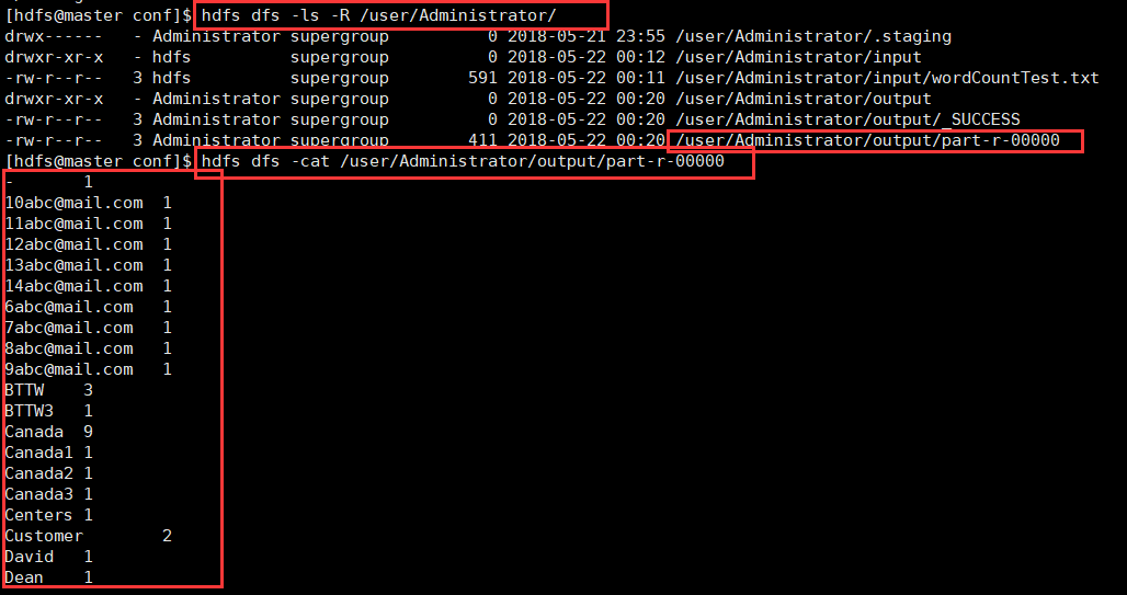 // 每次运行都需要先删除hdfs中,上一次执行生成的 output 文件夹。 hdfs dfs -rm -R /user/Administrator/output