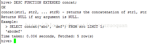 显示函数的扩展描述信息 DESC FUNCTION EXTENDED concat;