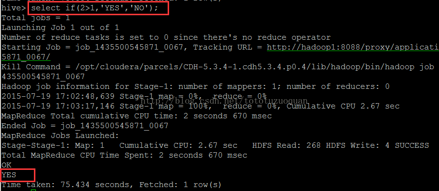 hive (default)> select if(2>1,‘YES‘,‘NO‘);