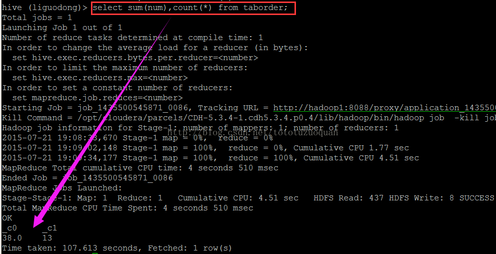 hive中的显示效果如下:
