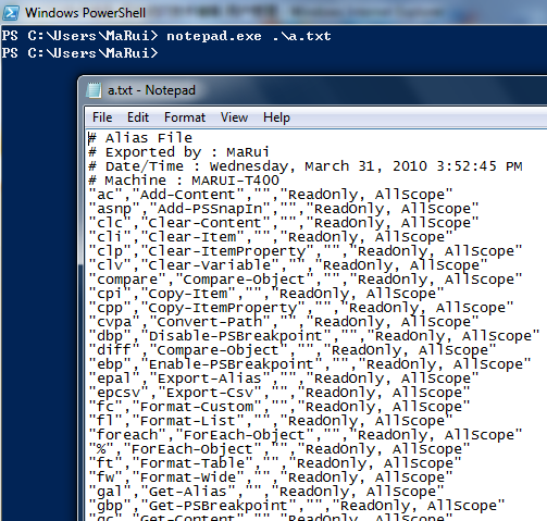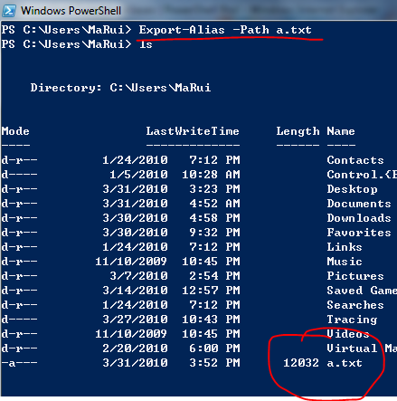 Export-Alias -Path a.txt <enter>