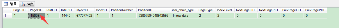 我这里的根页是15058,我们使用DBCC PAGE命令查看下这个根页(记得先执行 DBCC TRACEON(3604))。