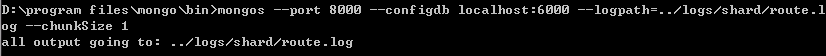 mongos --port 8000 --configdb localhost:6000 --logpath=../logs/shard/route.log --chunkSize 1