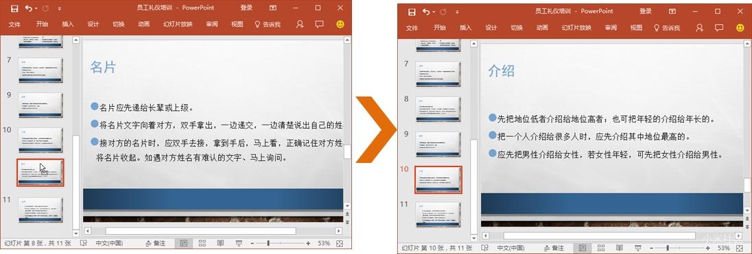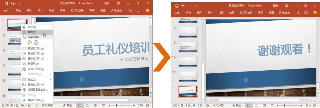 在编辑幻灯片的过程中,还可对幻灯片进行移动和编辑操作。