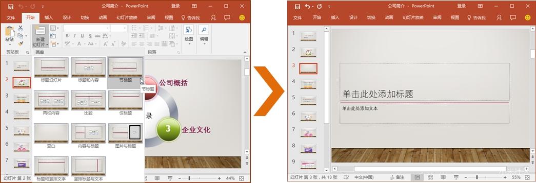 在制作和编辑演示文稿的过程中,如果演示文稿中的幻灯片不够,用户可以根据需要进行新建。