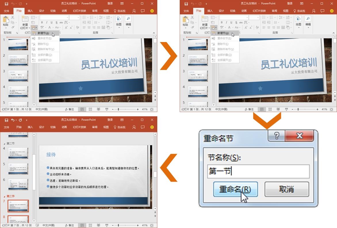 使用PowerPoint 2016提供的节功能可对幻灯片进行分组管理。
