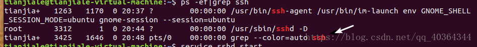 (4).查看是否已经开启SSH:命令 sudo ps -e |grep ssh
