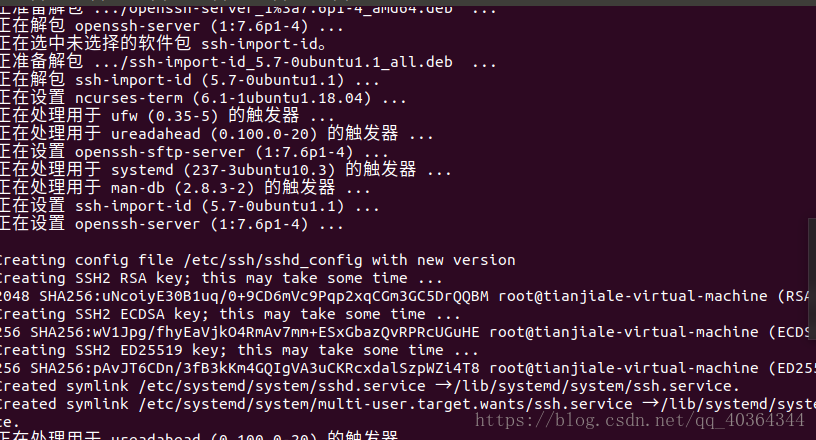 (2) .安装SSH 命令:sudo apt-get install openssh-server