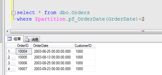 结果一行数据都没返回,事实就这样,因为OrderHistroy表中只存储了2002和2003年的历史数据,在没有合并分区之前,执行上面的代码肯定会查询出2003年的数据,但是合并了分区之后,上面代码实际查询的是第二个分区中2004年的数据。