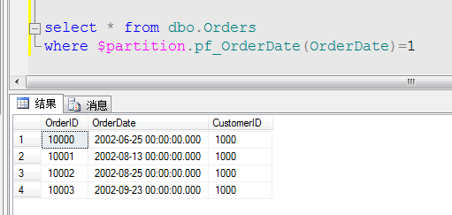 SELECT * FROM dbo.OrdersHistory WHERE $PARTITION.pf_OrderDate(OrderDate) = 1