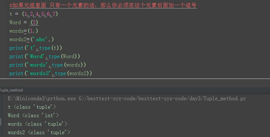 如果元祖里面只有一个元素的话,那么你必须在这个元素后边加上逗号,这样才是元祖的类型;否则类型会显示其他类型