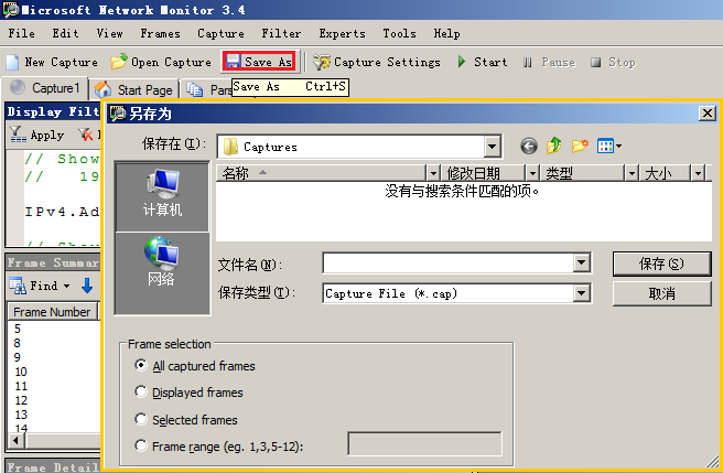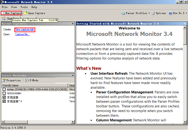 在“File”菜单选择“New”,再选择“Capture”;或者单击下图的按钮或链接。