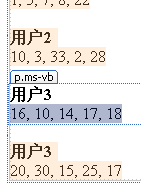 高亮选中一行值,注意不要选中用户姓名,只要数字。