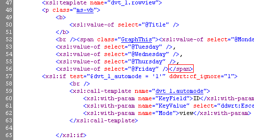 下图是添加编辑链接后的xsl样式代码。需要注意红框的SPAN结束标记的位置。如果把编辑视图的内容包进来的话显示图表会出问题。