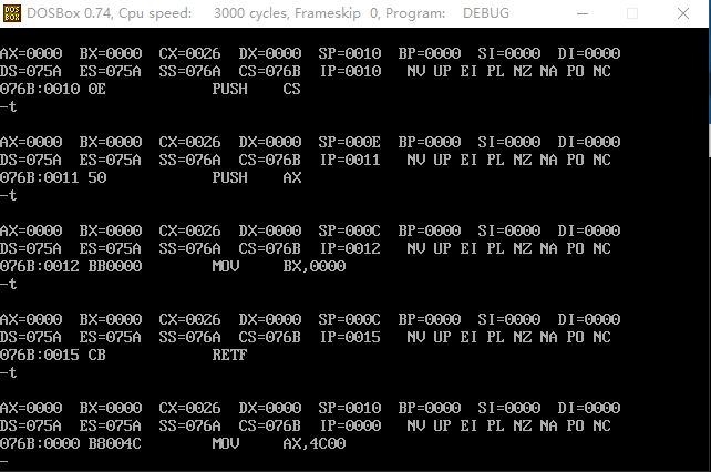 assume cs:code stack segment db 16 dup (0) stack ends code segment mov ax,4c00h int 21h start: mov ax,stack mov ss,ax mov sp,16 mov ax,0 push cs push ax mov bx,0 retf code ends end start