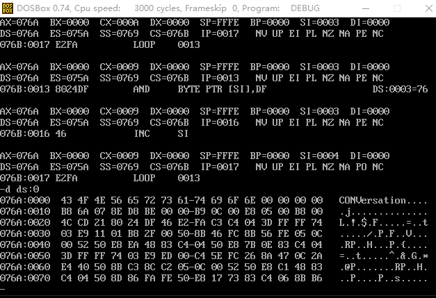 assume cs:code data segment db 'conversation' data ends code segment start: mov ax,data mov ds,ax mov si,0 mov cx,12 call capital mov ax,4c00h int 21h capital: and byte ptr [si],11011111b inc si loop capital ret code ends end start