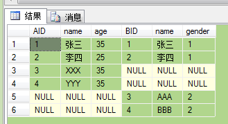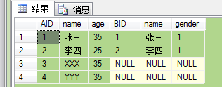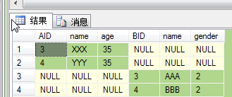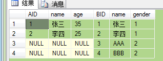 4.FULL [OUTER] JOIN 产生A和B的并集。对于没有匹配的记录,则会以null做为值。