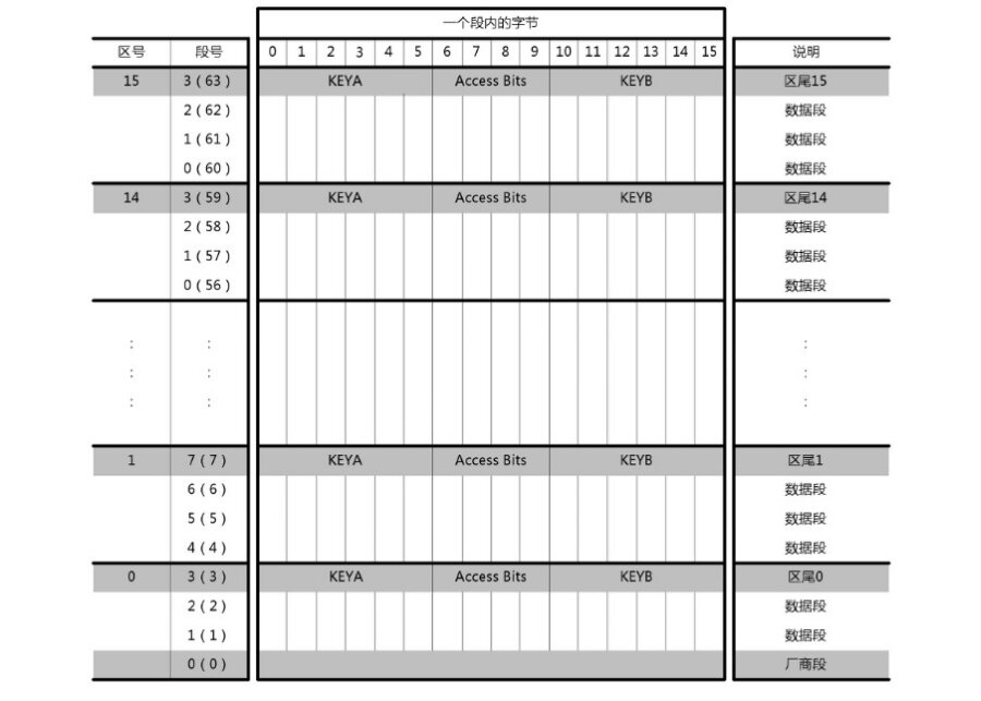 大家要先了解 M1 卡的结构,这能够为后期的破解做铺垫。
