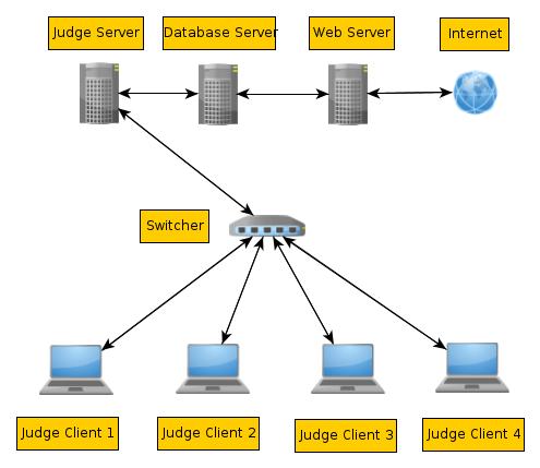 首先,可以选一台服务器A专门和数据库交互,包括从数据库中获取评测任务以及评测结束将结果写回数据库。然后选择N台普通计算机作为评测机,评测机只和数据库A打交道,也就是从服务器A获取任务,在普通机器上评测,评测完后将结果反馈到服务器A,再由A将结果写入到数据库。服务器A在这里就充当一个任务管理和分配的角色,协调各个评测机去评测。这样可以减少对数据库的操作,评测机就不用去一遍一遍扫数据库了。评测的速度和安全性可以得到进一步提升。