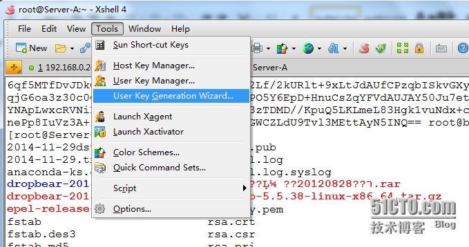 [root@Server-A~]# ssh-keygen -t rsa Generatingpublic/private rsa key pair. Enterfile in which to save the key (/root/.ssh/id_rsa): Enterpassphrase (empty for no passphrase): Entersame passphrase again: Youridentification has been saved in /root/.ssh/id_rsa. Yourpublic key has been saved in /root/.ssh/id_rsa.pub. Thekey fingerprint is: 9b:ef:2c:6a:92:05:c7:f4:4b:b8:4e:b4:ce:05:2f:0croot@Server-A Thekey's randomart p_w_picpath is: +--[RSA 2048]----+ | | | . | | o o | | E * o | | * *S. | | B +o | | B oo | | o = .o | | o.. o+ | +-----------------+ [root@Server-A~]# ls .ssh/ id_rsa id_rsa.pub known_hosts