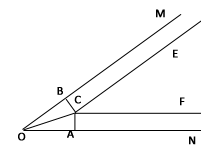 如图示,假设OM和ON围成锐角为原区域,CE和CF围成的锐角为移动后区域,因为CE到OM的距离等于CF到ON的距离,过C点,作垂直于OM的直线交点为B点,作垂直与ON的直线交点为A点,则CB=CA。由此得出∠BOC=∠COA。