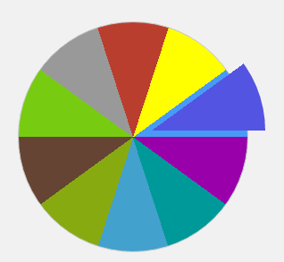 见第一个栗子中的.piece元素,让这个元素和其父级元素.colorWheel有相同大小,只给这个元素中需要分出来的部分设置背景色,设置方法同上。控制.piece的位置,可实现被切分出去效果。