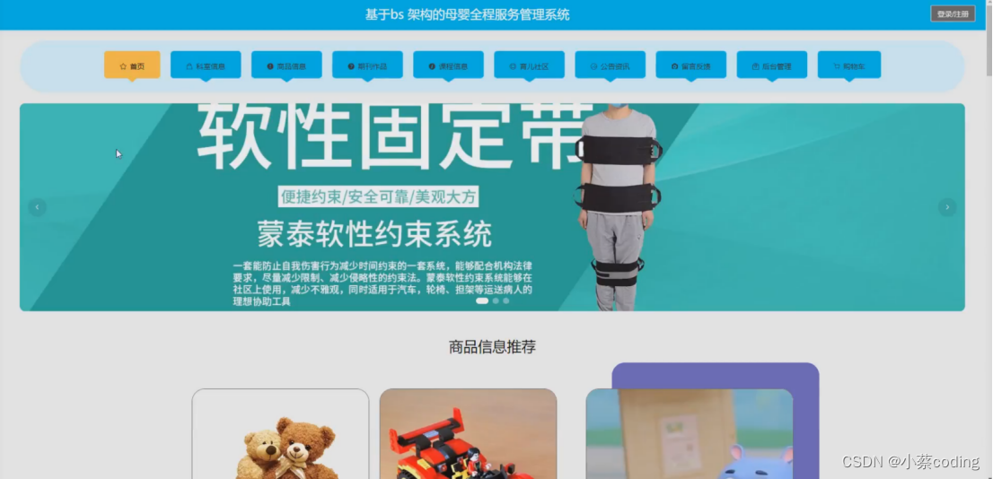 基于SpringBoot+Vue的母婴全程服务管理系统的详细设计和实现(源码+lw+部署文档+讲解等)... 文章目录前言详细视频演示具体实现截图技术栈后端框架SpringBoot前端框架Vue持久层框架MyBaitsPlus系统测试系统测试目的系统功能测试系统测试结论为什么选择我自己的网站自己的小程序(小蔡coding)代码参考数据库参考源码获取 前言????博主介绍:✌全网粉丝10W+,特邀作者、博客专家、新星计划导师、全栈领域优...