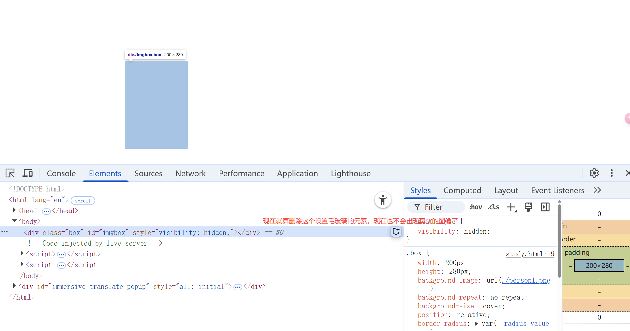我们直接将这个 id = imgbox 隐藏起来。