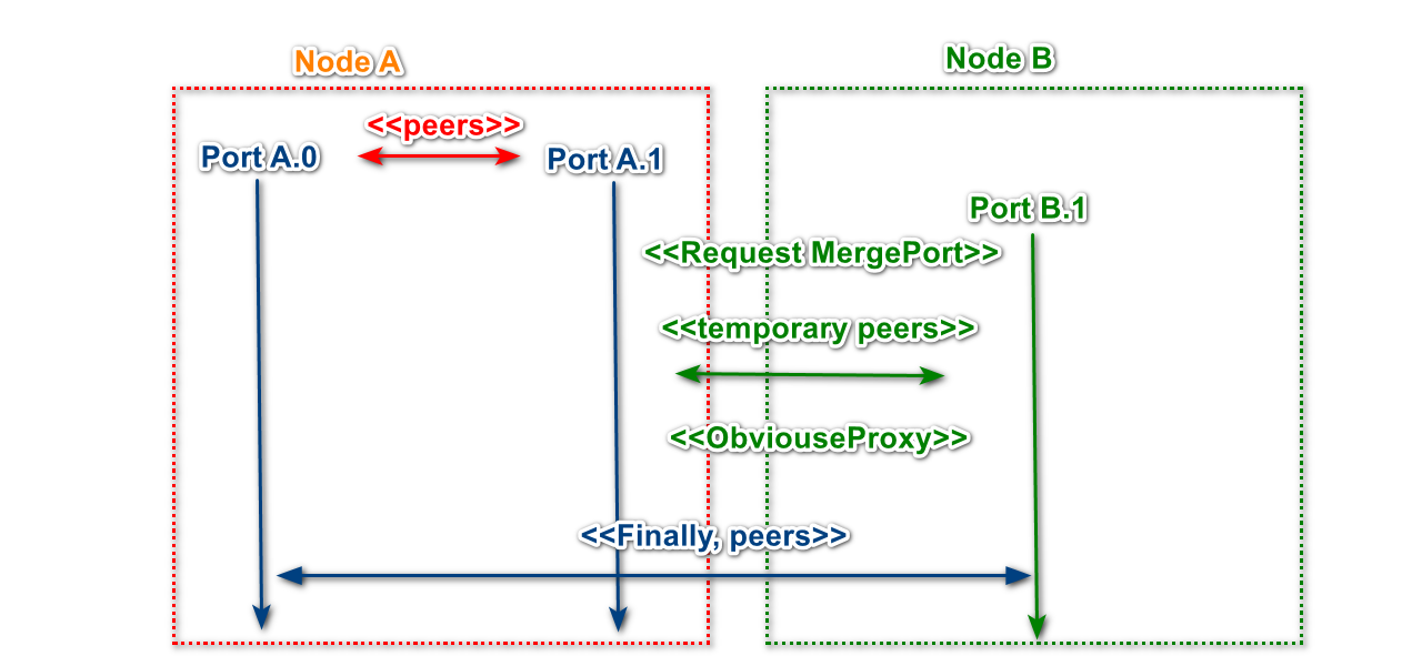 再来看ports的握手。这是一个MergePort的过程。 或者说MessagePipe是如何在两个node之间建立“连接”。因为Port层不具有真正意义上的连接。