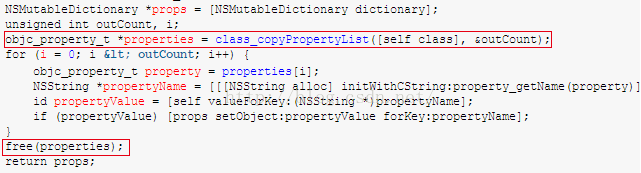 - objc_property_t *properties = class_copyPropertyList([self class], &outCount);