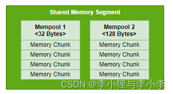 这些段在逻辑上被划分为“内存池”。内存池包含许多大小相等的“内存块”。
