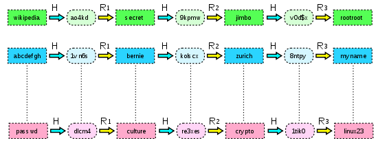 既然存储所有的明文密码对需要的空间太大,密码学家们想出了一种以计算时间降低存储空间的办法:“预计算的哈希链集”(Precomputed hash chains)。