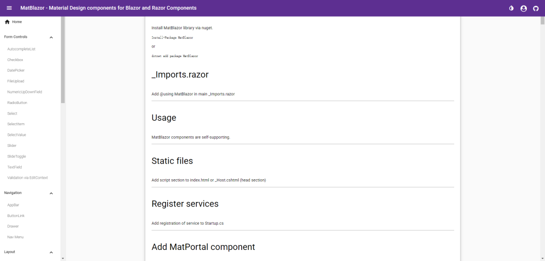 - GitHub开源地址:https://github.com/SamProf/MatBlazor