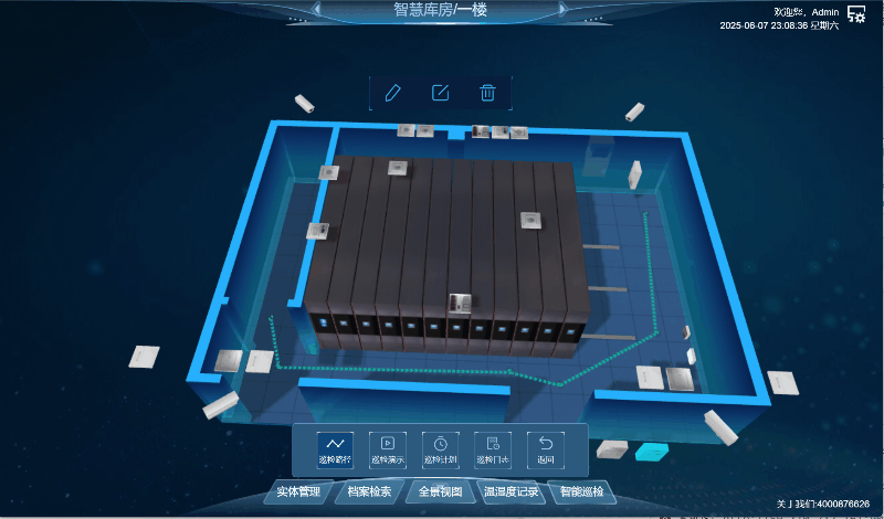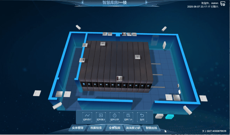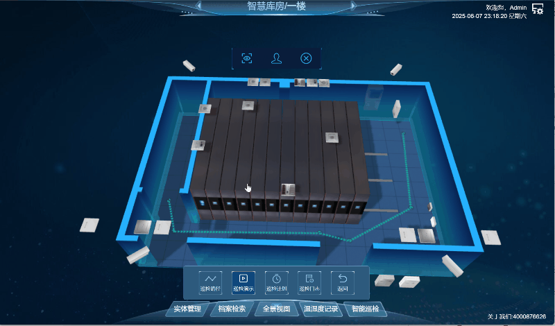 当档案库房突破二维平面,在虚拟空间中拔地而起时,传统的巡检方式正面临前所未有的挑战。蜿蜒的立体货架、交错的消防通道、分层的温控区域,构成了一个需要重新定义巡检规则的数字迷宫。