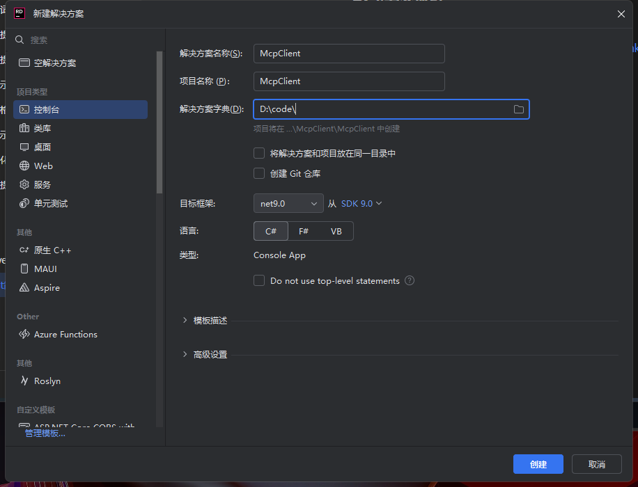 创建一个McpClient的控制台项目