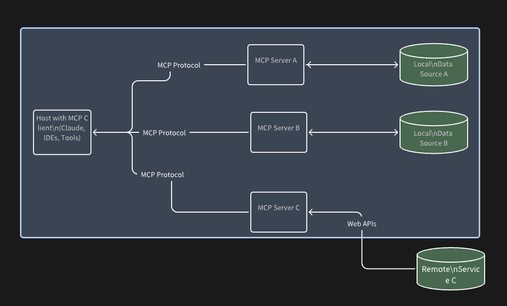 - Remote Services: MCP服务器可以连接的internet上可用的外部系统(例如通过api)