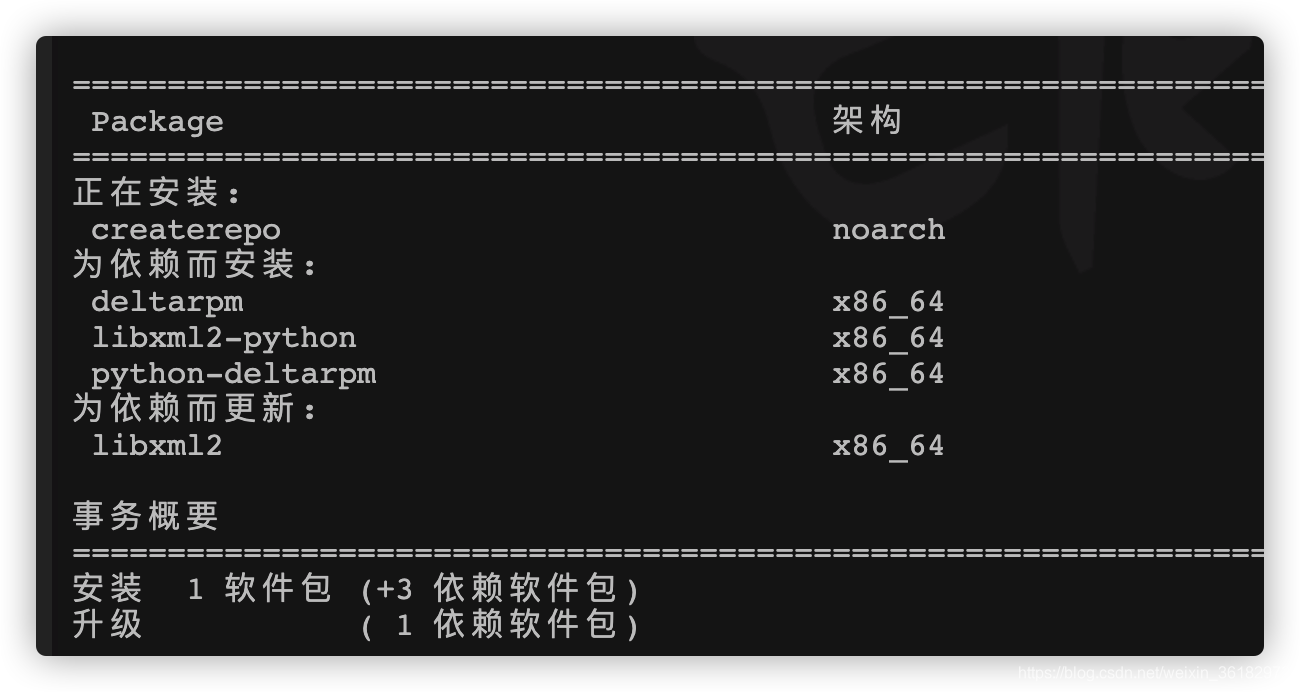 在本地输入sudo yum install createrepo ,我们可以看到大概需要以下几个包。