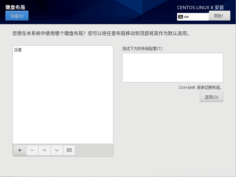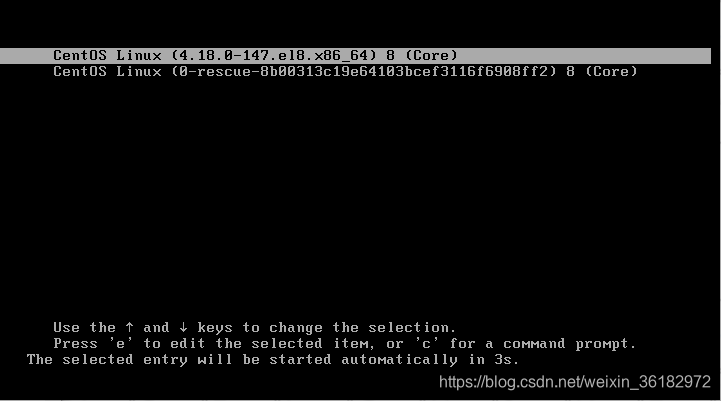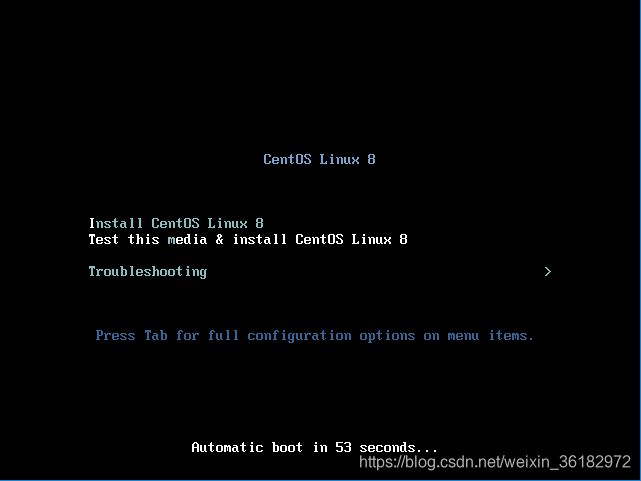 播放虚拟机之后,跳转以下页面选择第一个安装centos8