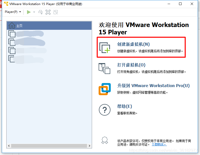 安装完之后,进入VMware player,创建新虚拟机