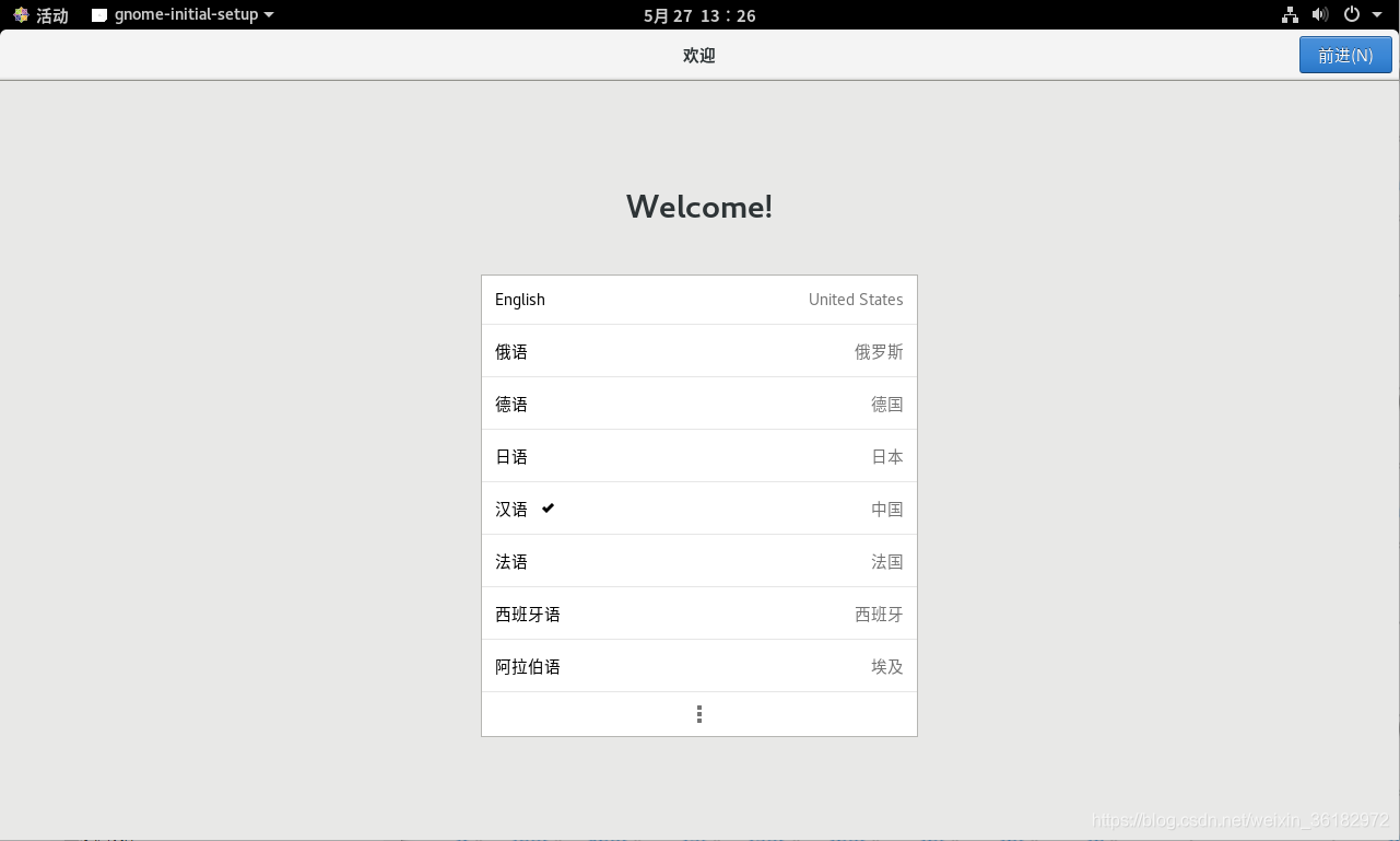 经过一些页面的跳转,我们到达选择语言的页面。选择语言,点击继续。
