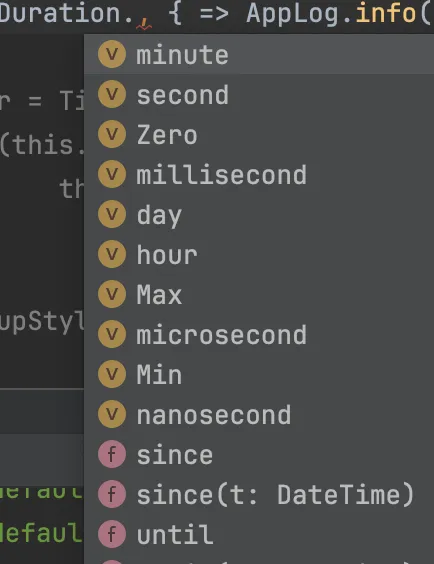 另一个比较奇怪的地方不知道大家有没有发现,计时器中的延迟时间和执行间隔这两个时间参数使用的是Duration类型的枚举,就是说只能使用它设定好的几个值,目前给出的时间值有Zero、second、minute、hour等,可以看到都是时间整数,你如果想要两秒执行一次,或者是二分之一秒执行一次大概是不行的。