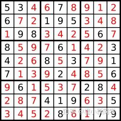 而这道解数独题目其实和八皇后问题和迷宫问题的思路是大同小异的,就是在每个空白位置依次尝试着赋予1-9这9个数,首先看赋予的值与其每一行每一列以及所在的3x3小区域的值是否冲突,如果冲突,则换成另一个值;如果不冲突,则可以尝试该值赋值给当前位置,并递归到下一个位置的赋值操作,如果下一个值得到的结果是True,这说明当前位置赋予的值是有效的,不须改变,否则就要初始化并回溯,直到找到有效结果。