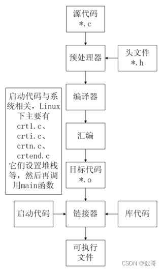 4. C语言编译过程 C程序编译步骤C代码编译成可执行程序经过4步:预处理:宏定义展开、头文件展开、条件编译等,同时将代码中的注释删除,这里并不会检查语法编译:检查语法,将预处理后文件编译生成汇编文件汇编:将汇编文件生成目标文件(二进制文件)链接:C语言写的程序是需要依赖各种库的,所以编译之后还需要把库链接到最终的可执行程序中去VS 执行结果一...