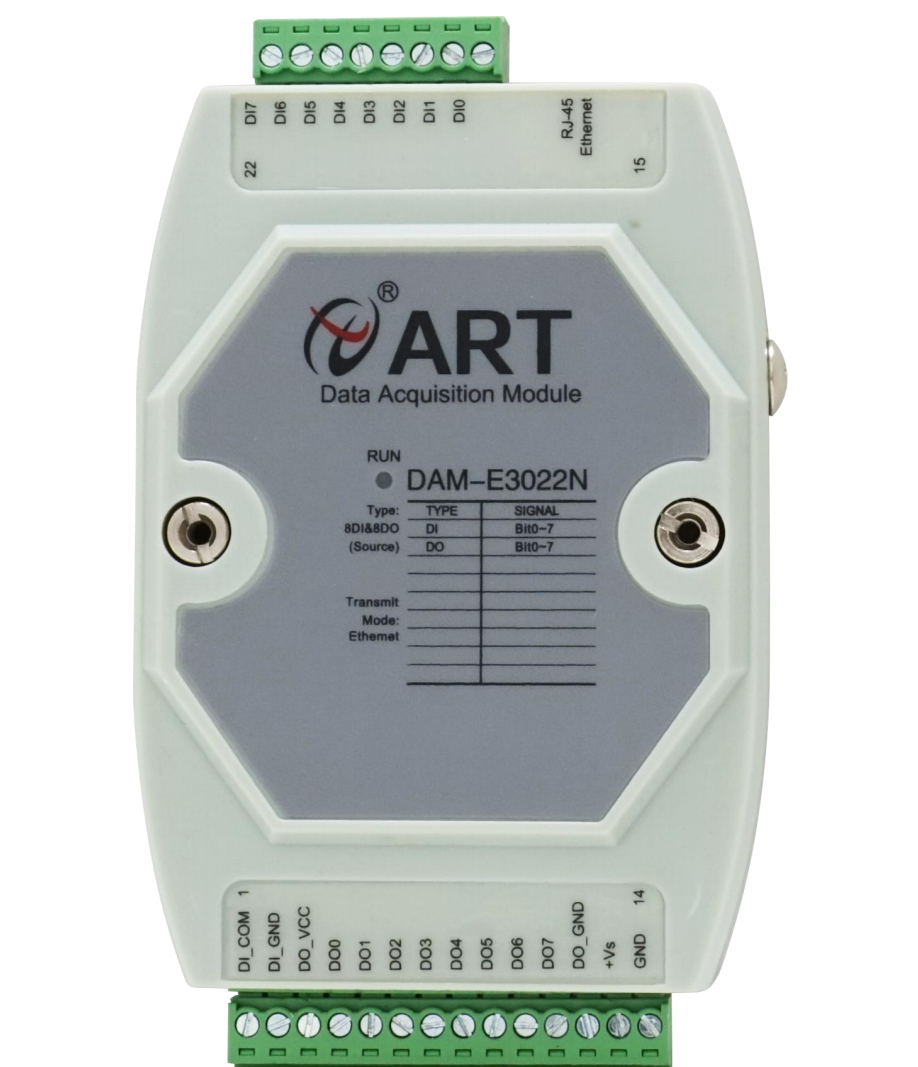DAM-E3022N 以太网通讯 8路隔离数字量输入 8路隔离数字量输出模块 DAM-E3022N为8路隔离数字量输入,8路隔离数字量输出模块,以太网通讯接口,带有标准Modbus TCP协议。配备良好的人机交互界面,使用方便,功能丰富。 ...